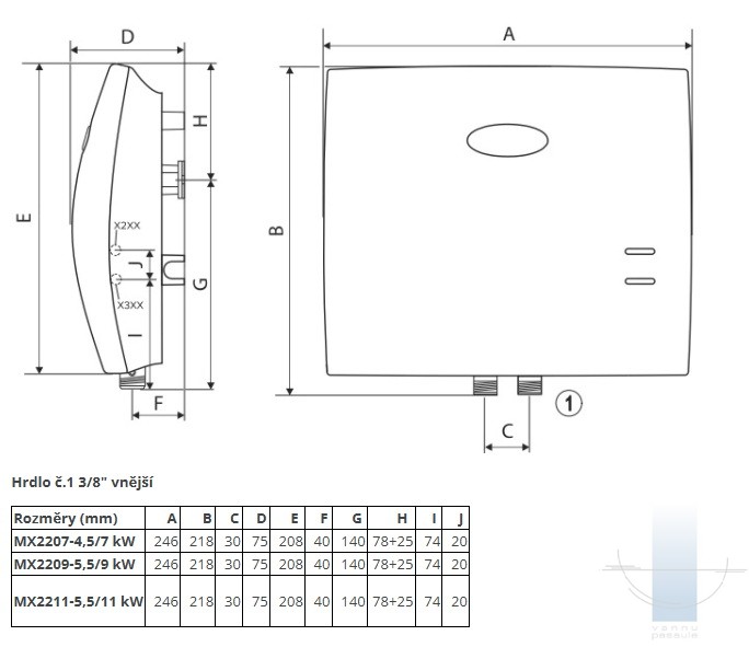 MX 2207 4,5kw/7kw caurplūdes ūdens sildītājs