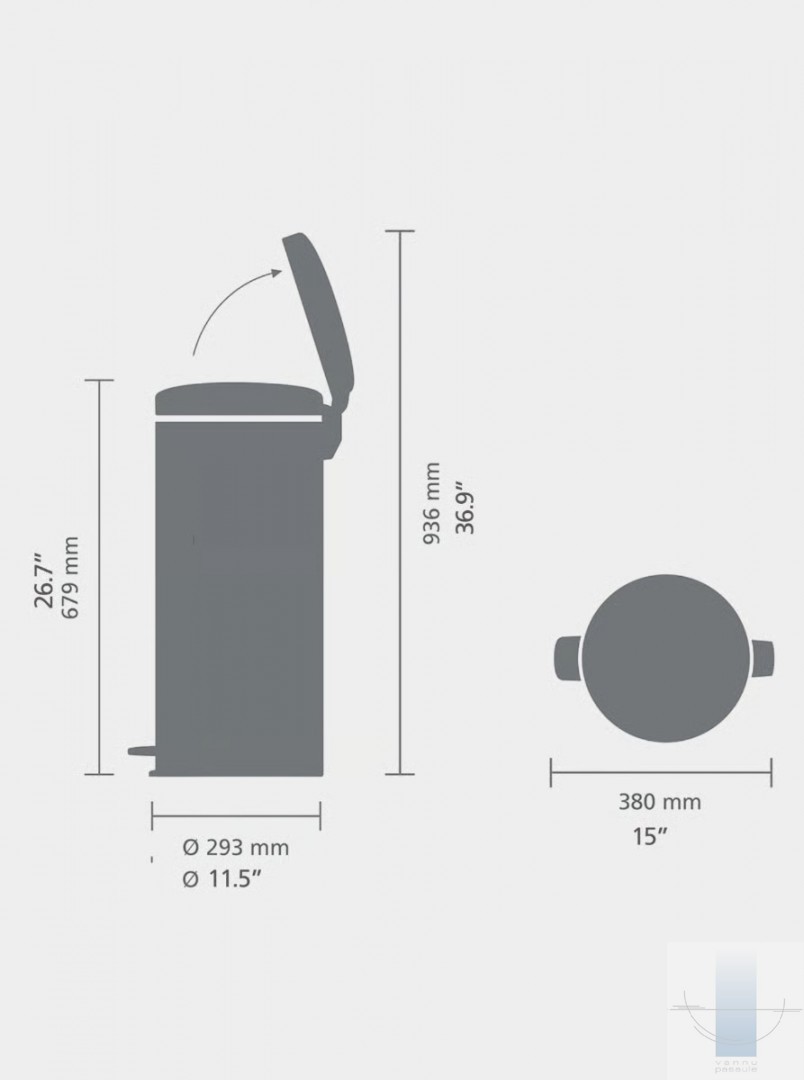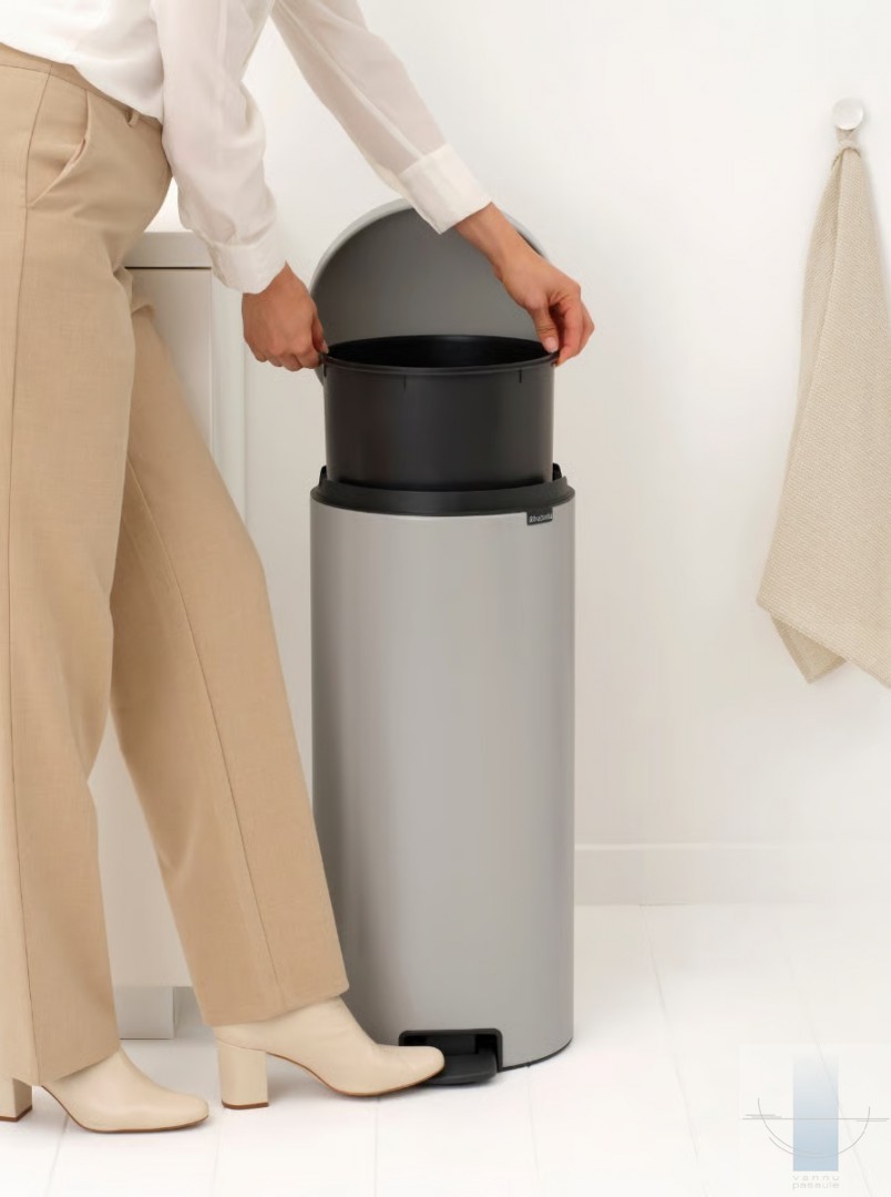 Brabantia 30 litru atkritumu tvertnei ar pedāli NewIcon ir ikonisks dizains, un tā ir arī uzticama. Izturīga un vienmēr stingri turas, pateicoties neslīdošai pamatnei un pretapgāšanās blokam. Pateicoties unikālajai mīkstās aizvēršanas funkcijai, tā aizveras gludi. Un, protams, šī NewIcon atkritumu tvertne ar pedāli ir higiēniska, izturīga pret smakām, viegli atverama un tīra. Lieliski piemērota jūsu virtuvei vai jebkurai citai telpai, kurā noderētu 30 litru mūžīgs dizains.