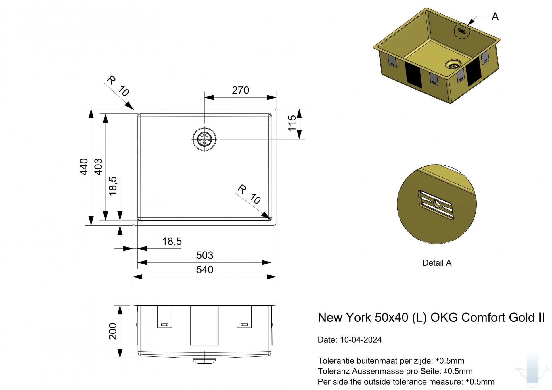 Reginox New York Comfort virtuves izlietne (L) 54x44 cm, Gold II