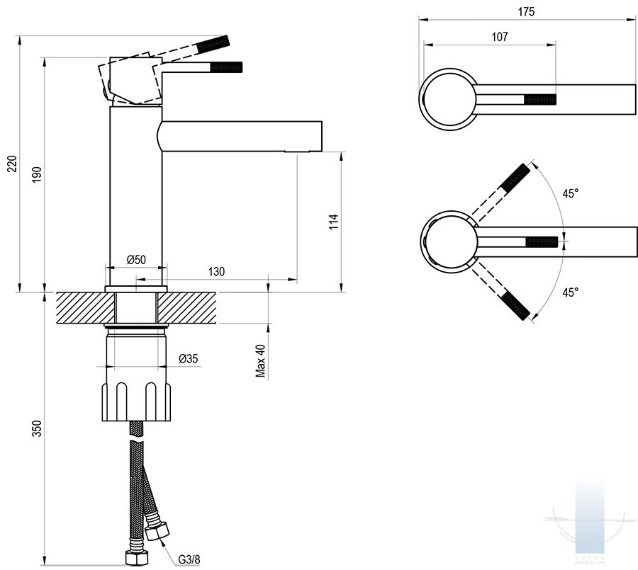 Ravak - Nox NX 014.20BLM izlietnes maisītājs 190 mm, Black matt
