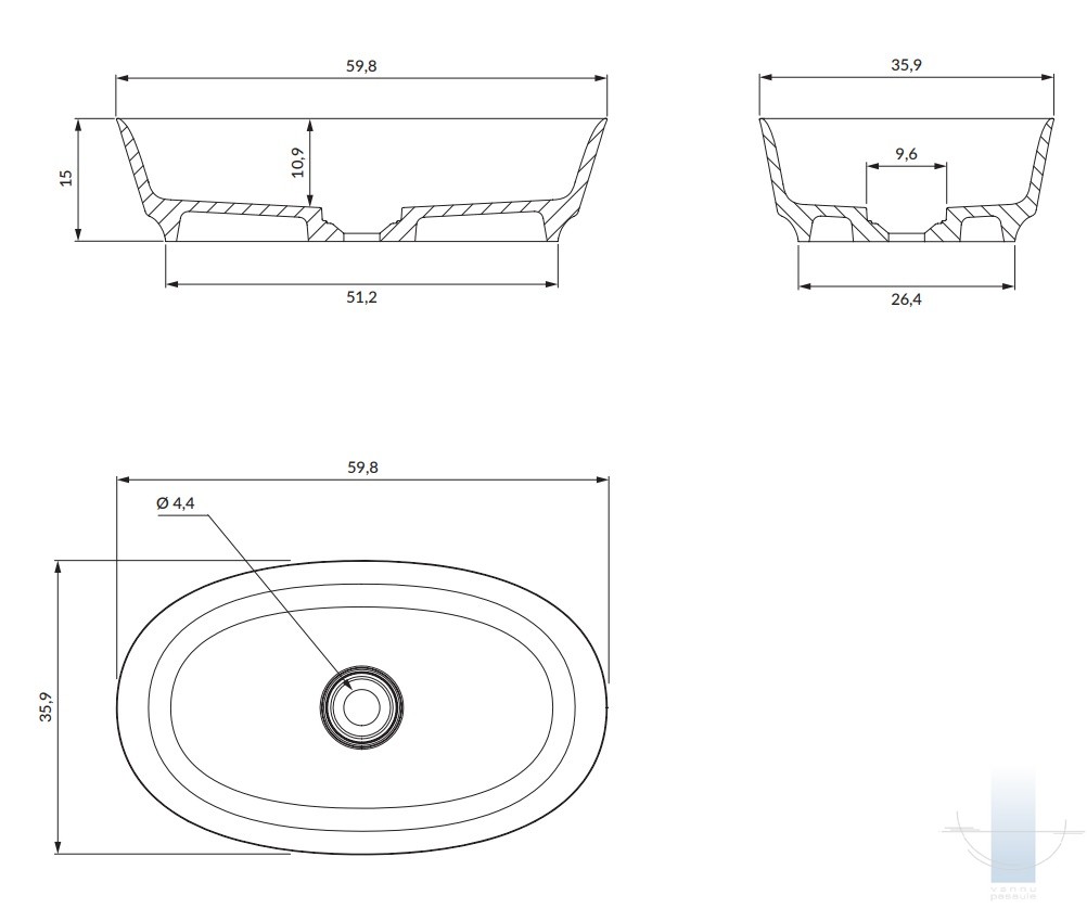 Omnires Neo M+ izlietne uz virsmas 60x36 cm, Matt white