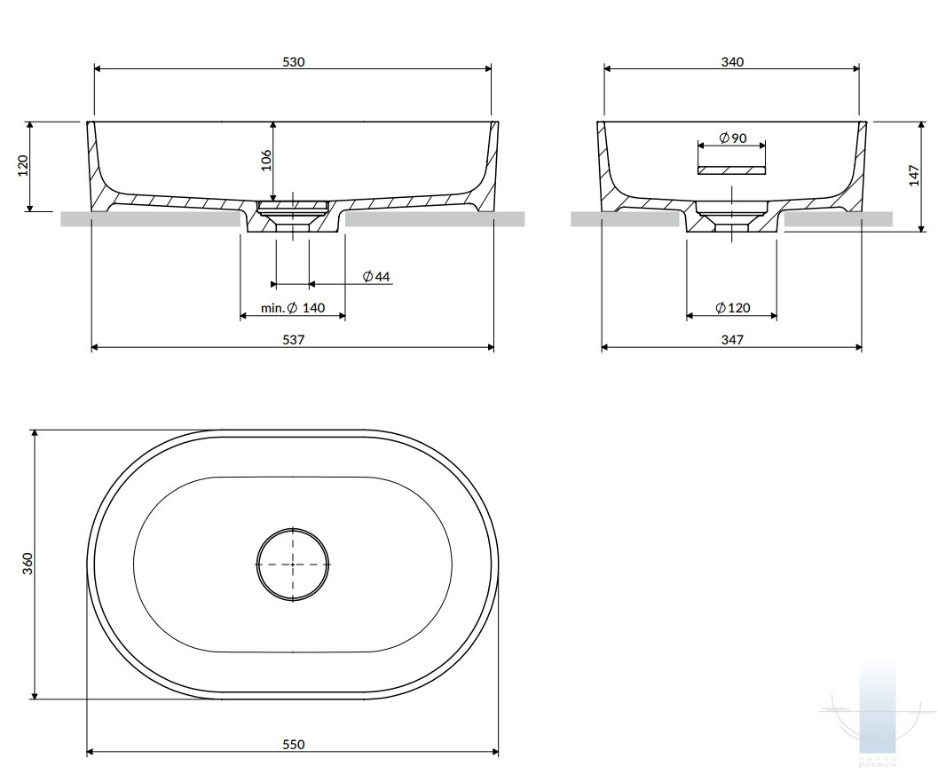 Uzliekamā izlietne no OMNIRES OVO kolekcijas izceļas ar izteiksmīgu siluetu un nevainojamām proporcijām. Spēle ar ģeometriskām formām radījusi dizainu, kas balstīts uz diviem puslokiem. Harmoniski veidotās malas noslēdzas ar plakanu apmali, kas izceļ izlietnes eleganto siluetu. Bļodas iekšpusē perfekti pieskaņotais notekas vāciņš nodrošina visaugstāko estētisko pilnību.