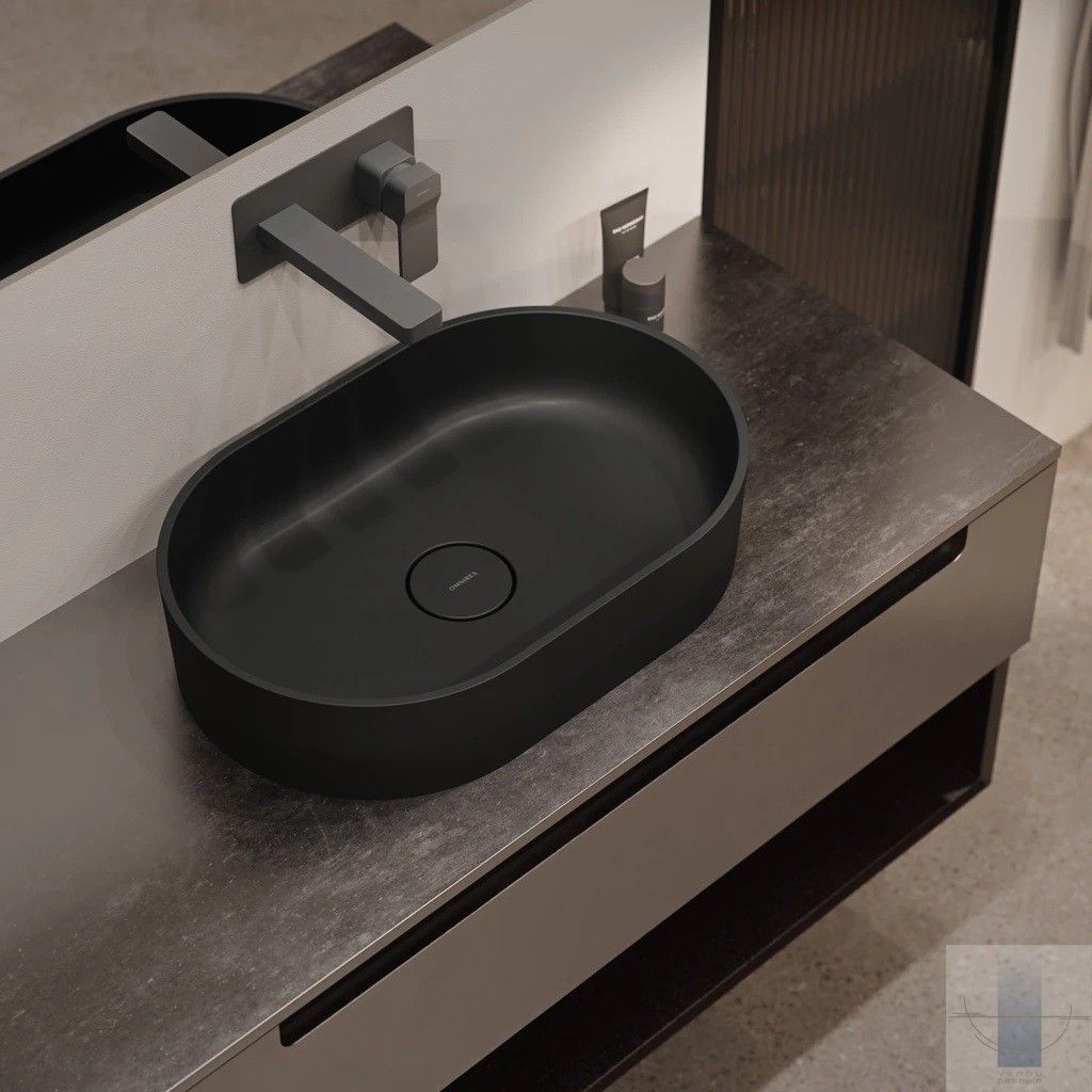Omnires Ovo M+ izlietne uz virsmas 55x36 cm, Matt black lava