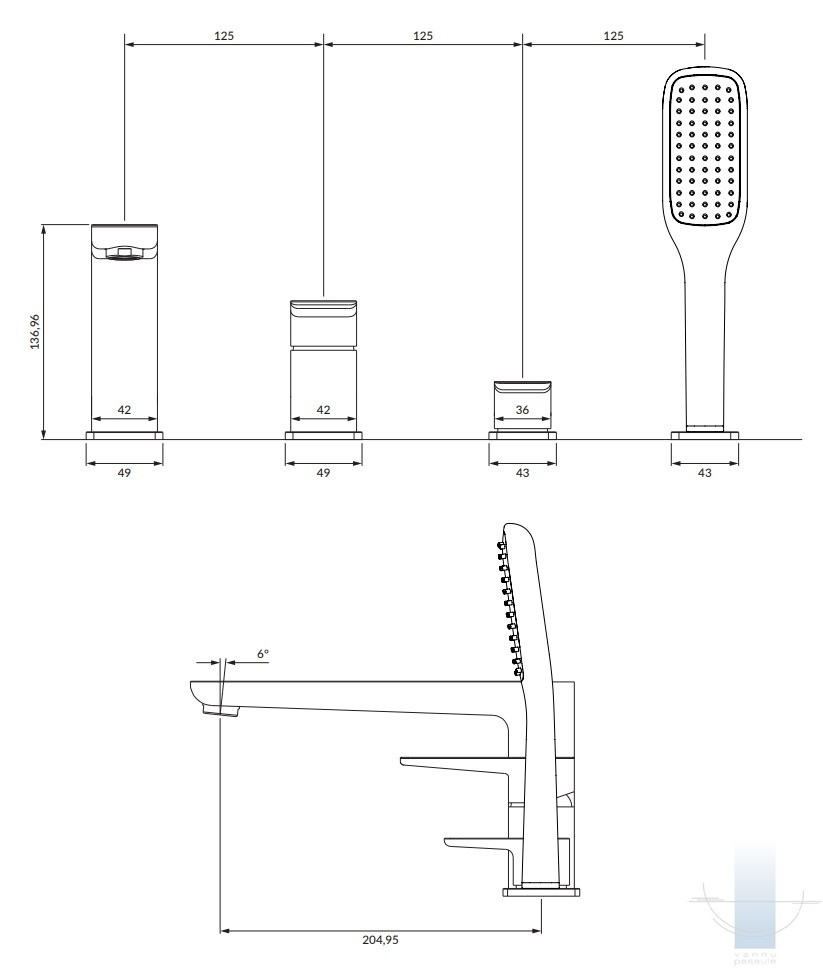 Omnires Parma 4-daļīgs vannas maisītājs, Brushed graphite