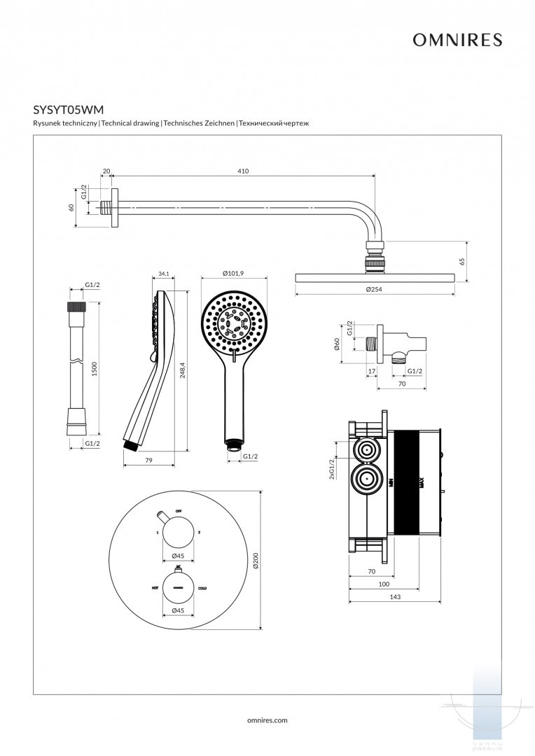 Omnires Y Termostatiska dušas sistēma slēptai uzstādīšanai