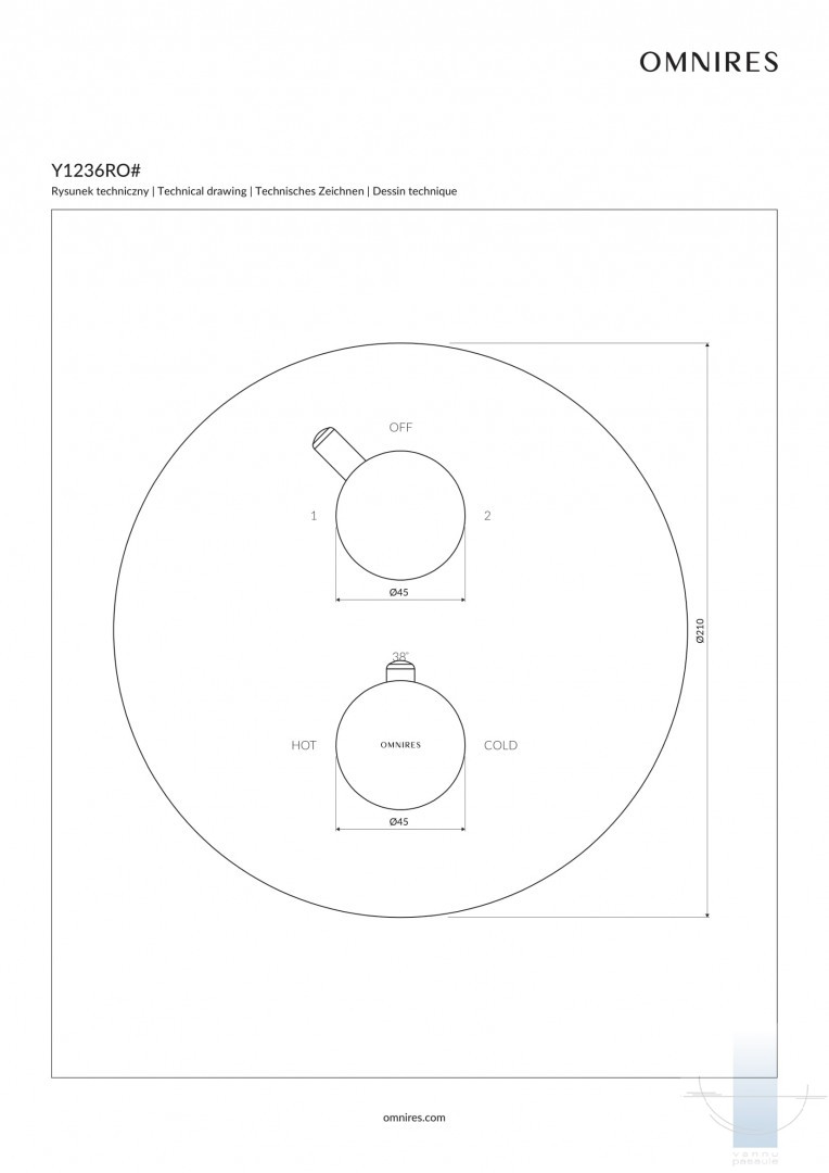 Omnires Y Termostatiskā dušas/vannas maisītāja redzamais elements iebūvētai uzstādīšanai
