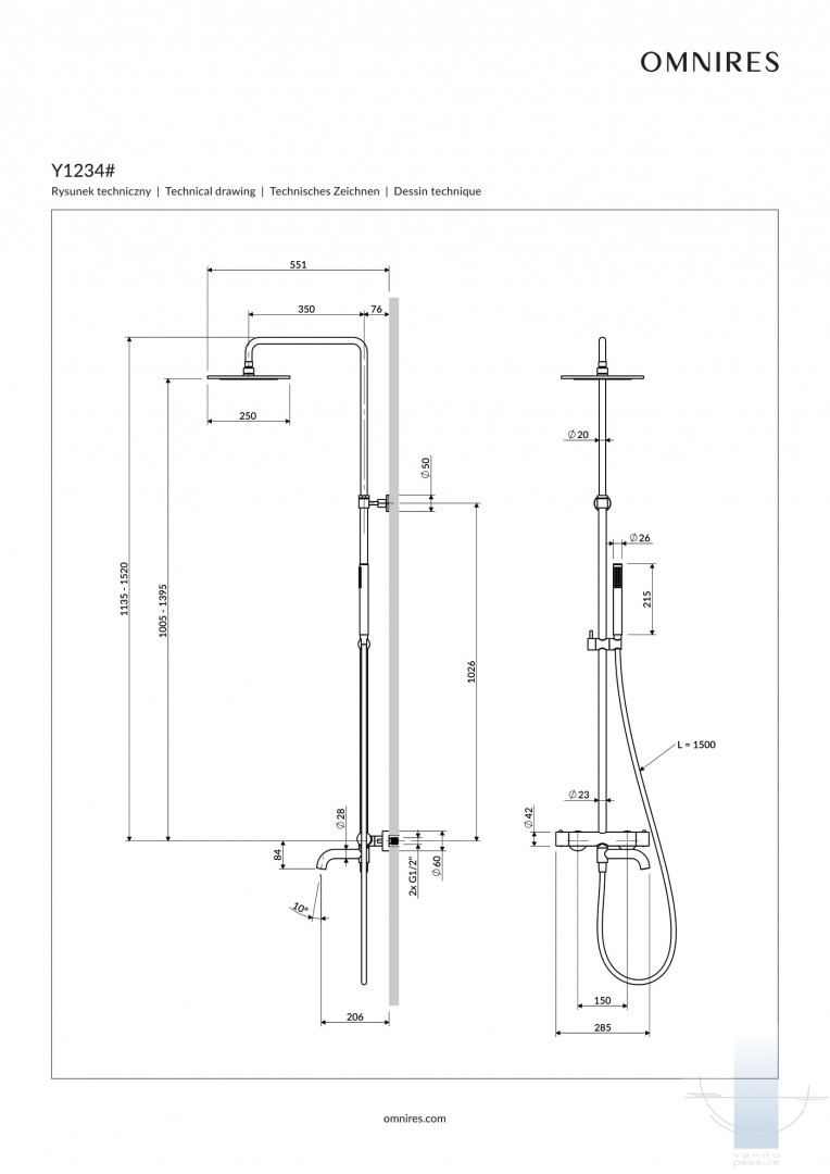 Omnires Y Termostatiska vannas sistēma atklātai uzstādīšanai