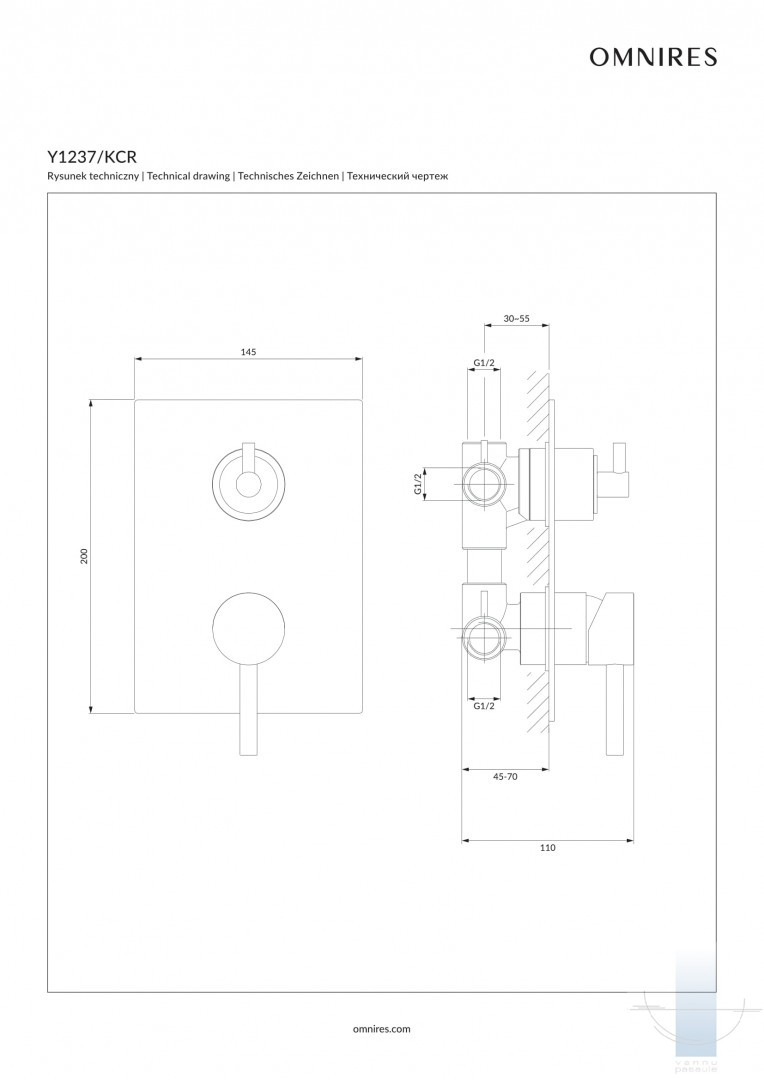 Omnires Y Trīsceļu dušas/vannas jaucējkrāns slēptai uzstādīšanai
