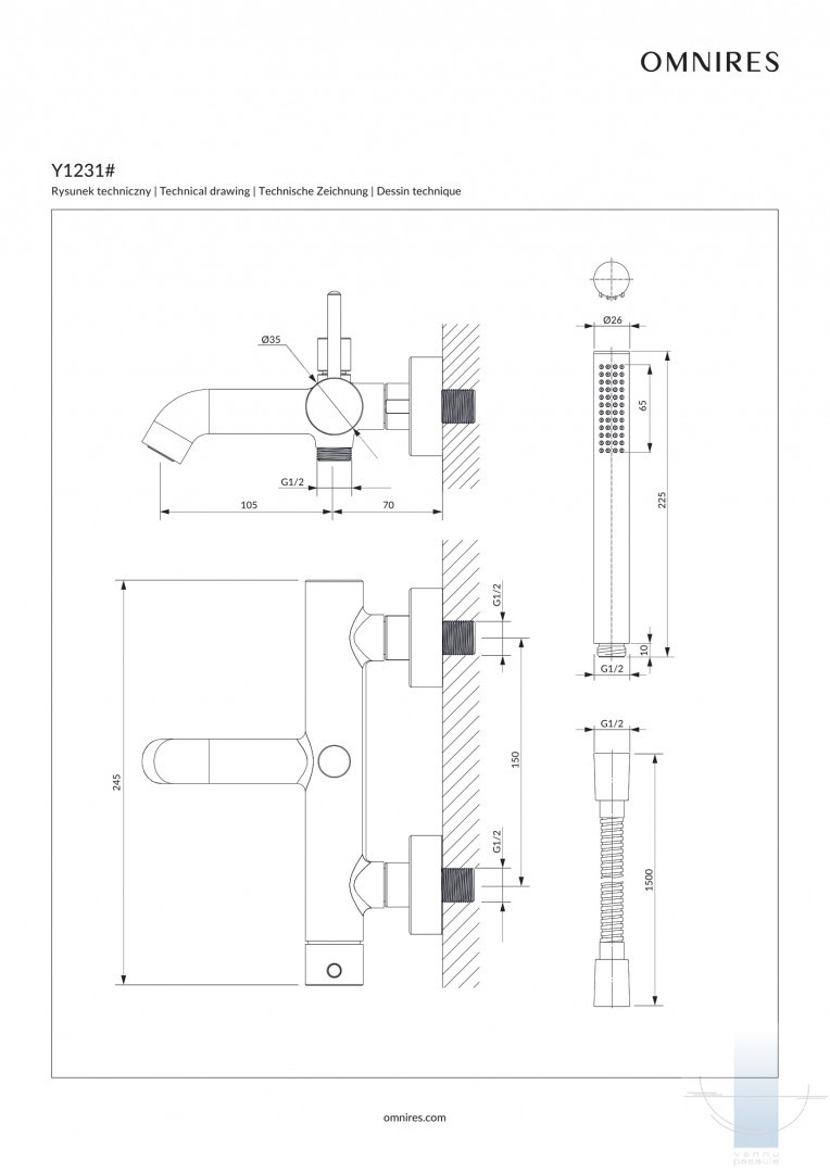 Omnires Y Vannas maisītājs ar dušas komplektu