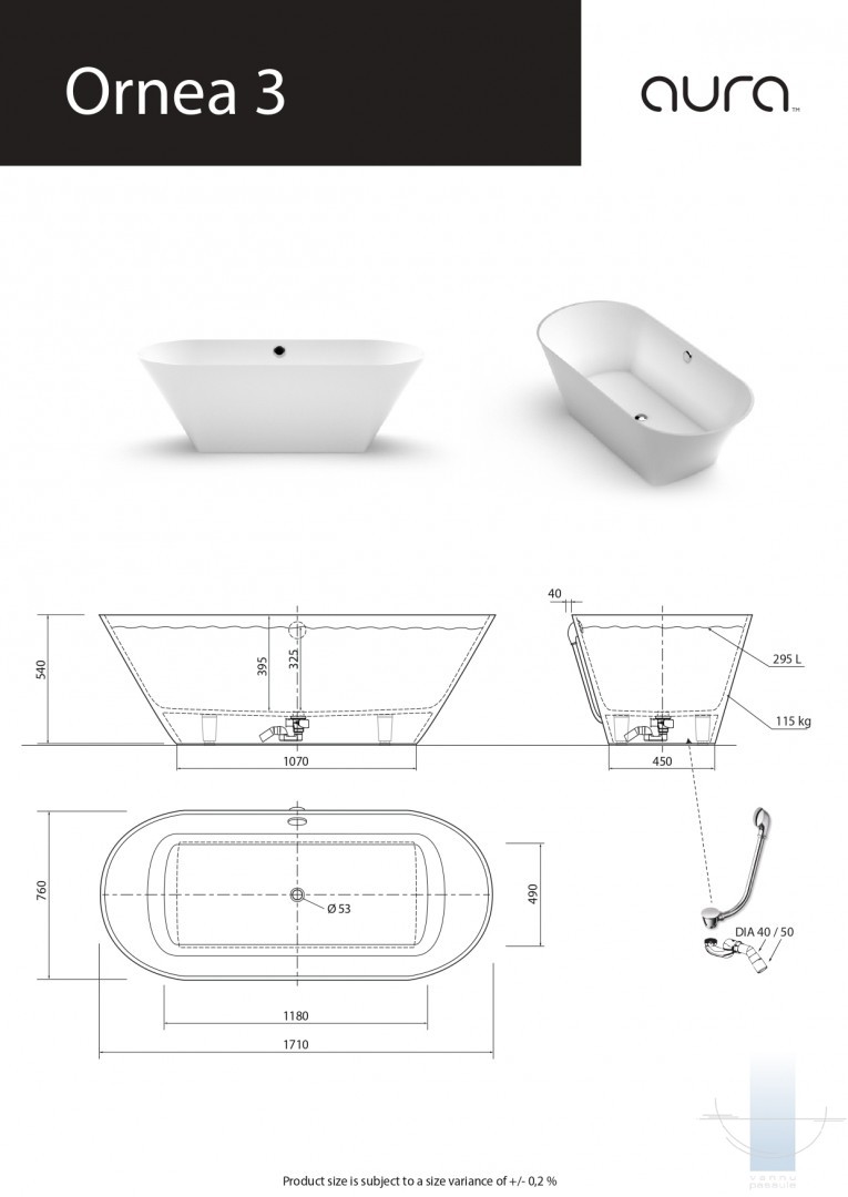 *Iespējams pasūtīt vannu ar pārplūdi.