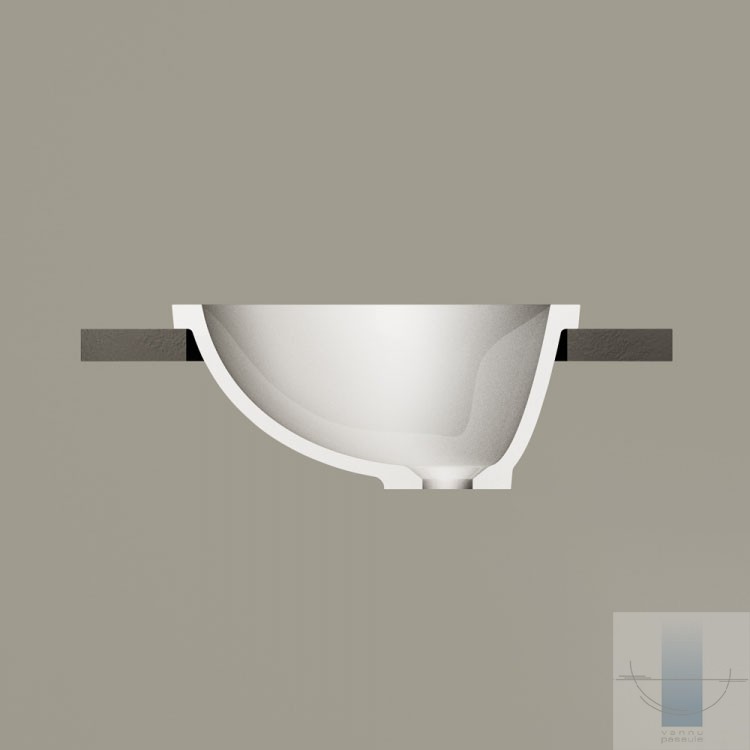 Virsmā iedziļināma izlietne. Izgatavota no Silkstone – cēla un ilgmūžīga materiāla. Cieta kā akmens ar matēti zīdainu, siltu virsmu. Apstrādāta ar rokām.