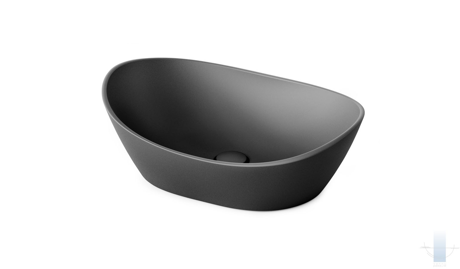 Maigas formas izlietne novietošanai uz virsmas. Izgatavota no Graphite – Silkstone gleznieciskākās, melnās versijas. Ar teksturētu, meistaru rokām veidotu, unikālu virsmu katram izstrādājumam,