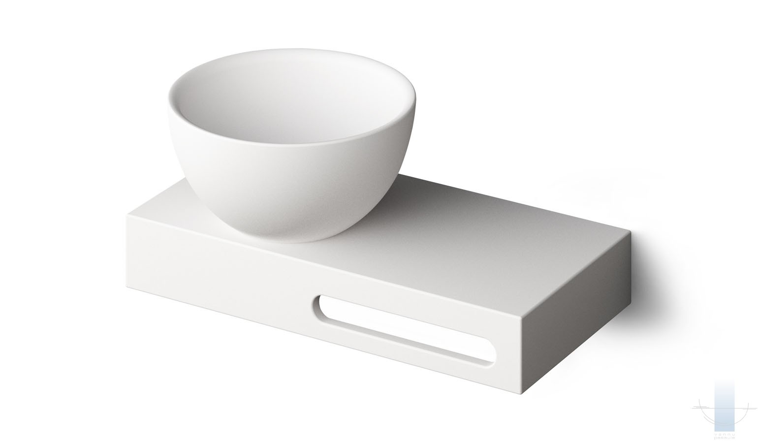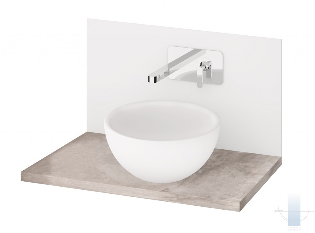 Īpaši kompakta izlietne šaurām telpām. Novietošanai uz virsmas. Izgatavota no Akmens masas – cēla un ilgmūžīga materiāla. Cieta kā akmens ar glancētu virsmu.