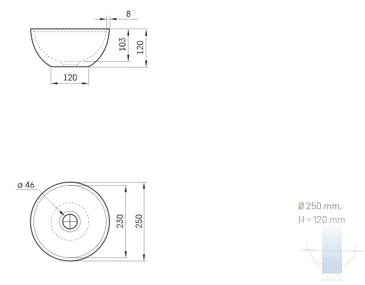 PAA Izlietne Do 25, Ø 250 mm,akmens masa, Balta