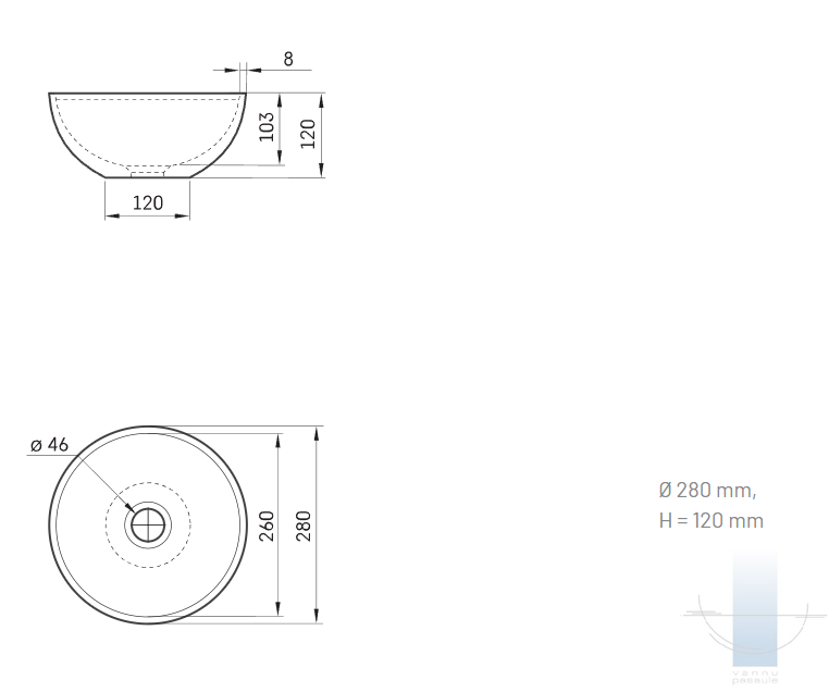 PAA Izlietne Do 28, Ø 280 mm,akmens masa, Balta