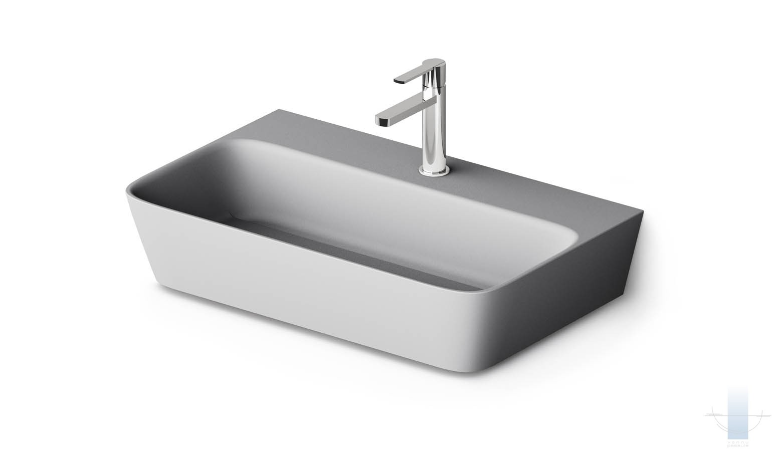 Uz virsmas vai pie sienas montējama izlietne. Inovatīva, skatienam noslēpta noplūde. Izgatavota no Silkstone – cēla un ilgmūžīga materiāla. Cieta kā akmens ar matēti zīdainu, siltu virsmu. Apstrādāta ar rokām.