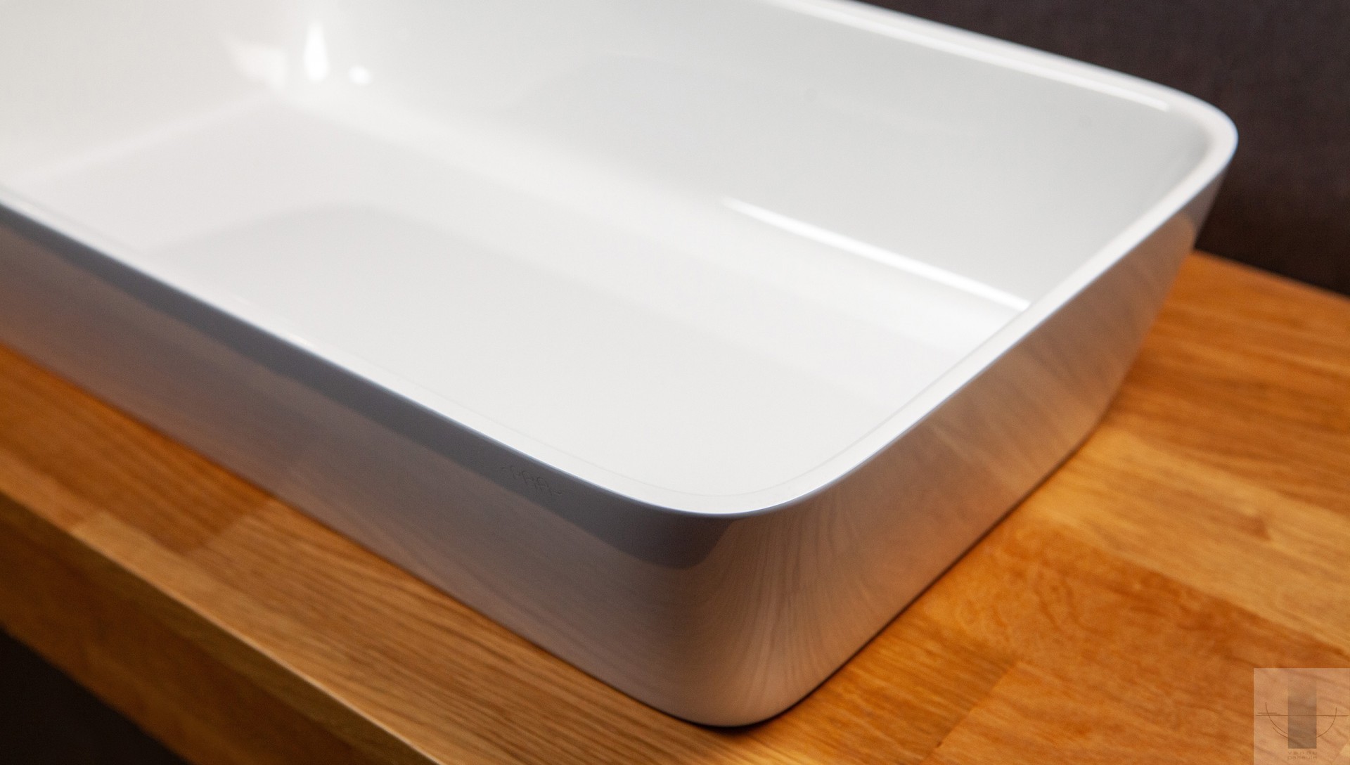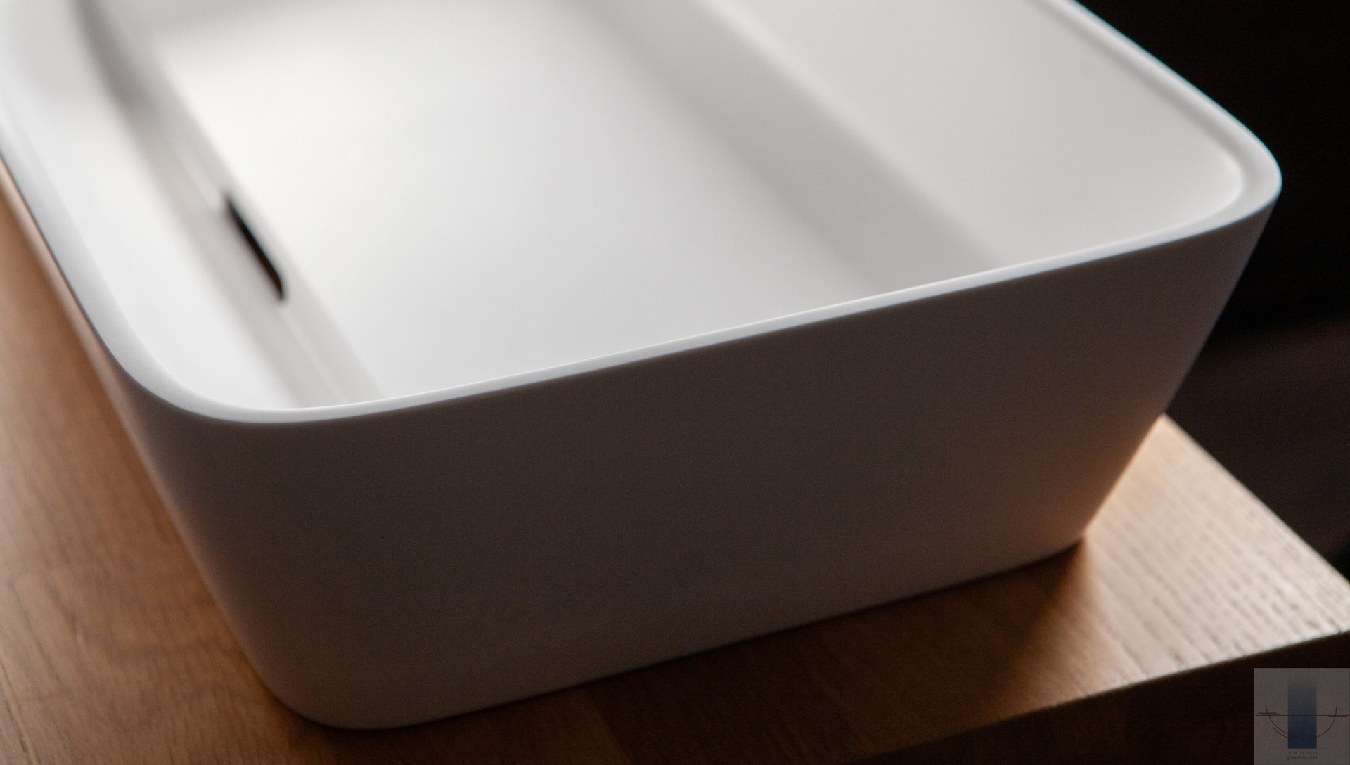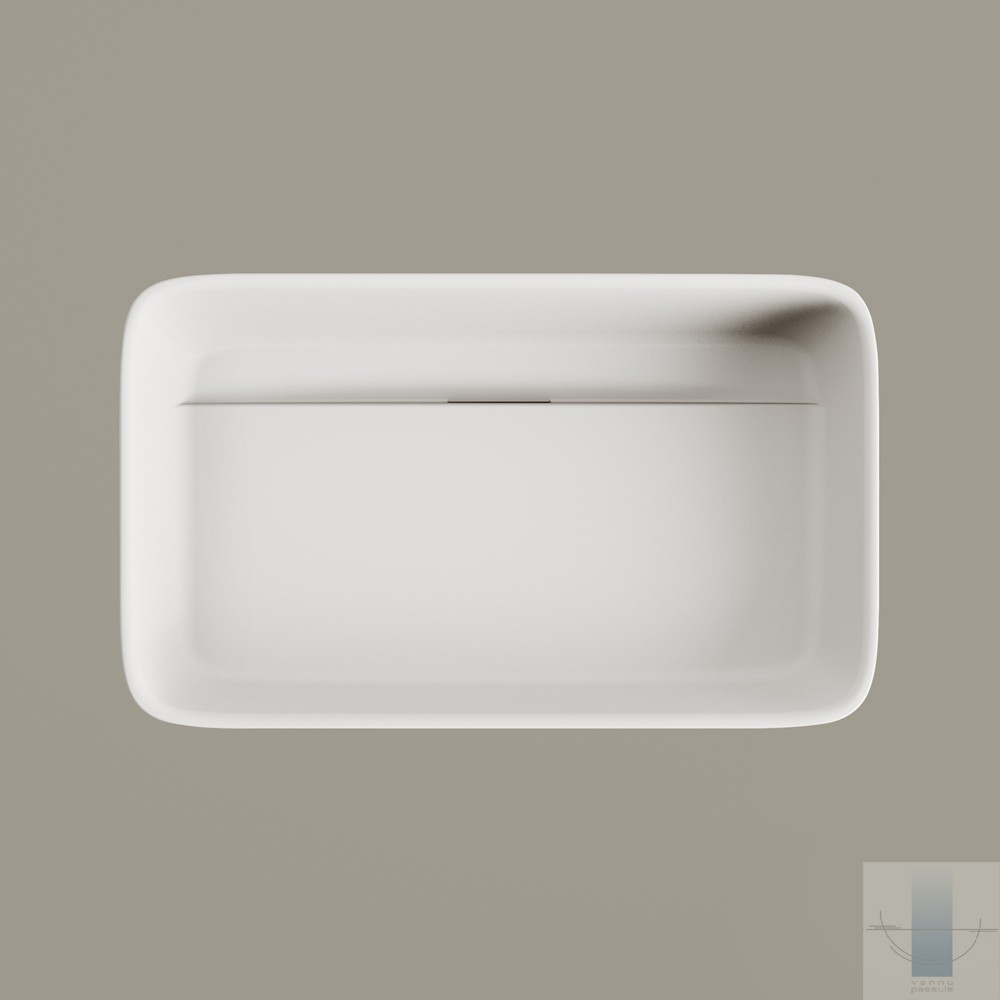 Neliela. Uz virsmas novietojama izlietne. Viegla perimetra līnija. Inovatīva, skatienam slēpta noplūde. Izgatavota no Silkstone – cēla un ilgmūžīga materiāla. Cieta kā akmens ar matēti zīdainu, siltu virsmu. Apstrādāta ar rokām.
