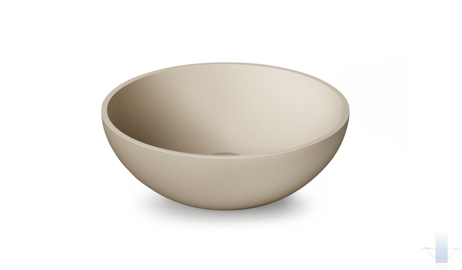 Klasiska un omulīga izlietne novietošanai uz virsmas. Izgatavota no Silkstone – cēla un ilgmūžīga materiāla. Cieta kā akmens ar matēti zīdainu, siltu virsmu. Apstrādāta ar rokām.