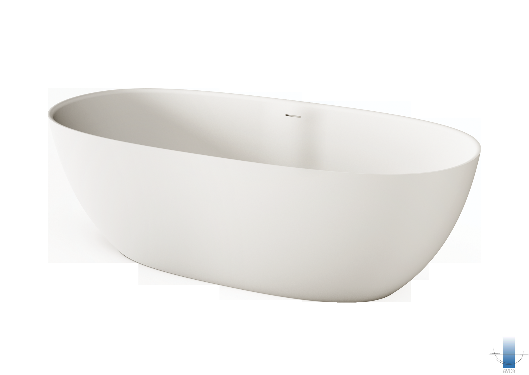 Vizuāli viegla, skulpturāli precīza un ietilpīga brīvstāvošā vanna. Izgatavota no akmens masas – pamatīga un stabila materiāla ar klasiski spožu virsmu.