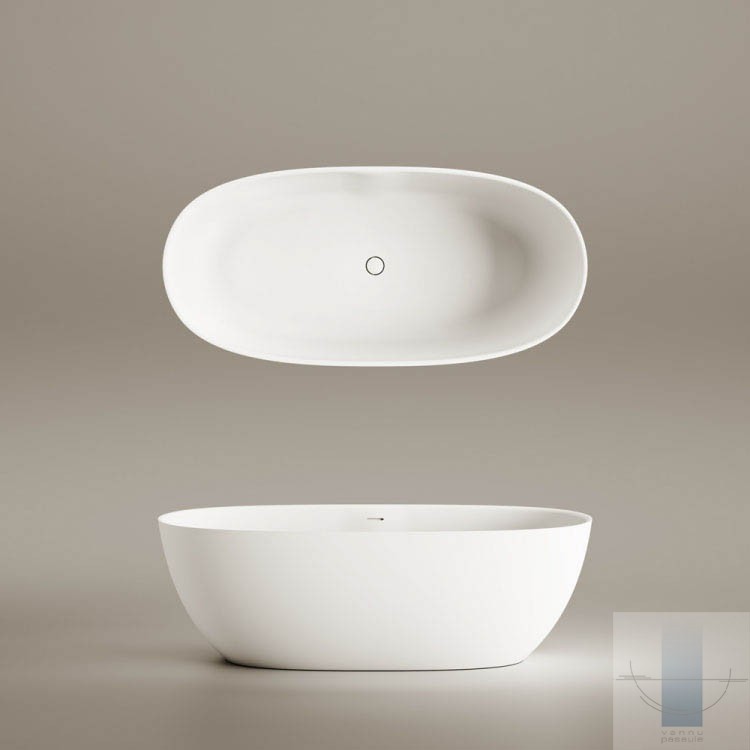Vizuāli viegla, skulpturāli precīza un ietilpīga brīvstāvošā vanna. Izgatavota no Silkstone – cēla un ilgmūžīga materiāla. Cieta kā akmens ar matēti zīdainu, siltu virsmu. Apstrādāta ar rokām.