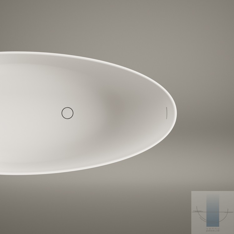 Ievērojama un plaša olveida vanna. Izveidota no Silkstone – mūsdienu marmora: izsmalcināta un izturīga akmens ar samtainu, siltu virsmu. Roku darbs.