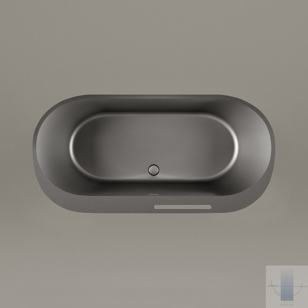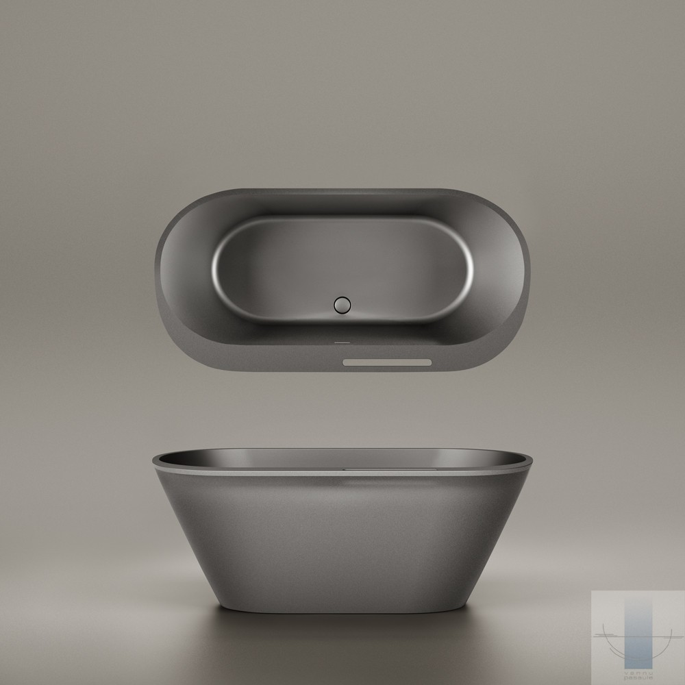 Lakoniska vanna ar plauktiņu un dvieļu turētāju. Izgatavota no Graphite – Silkstone gleznieciskākās, melnās versijas. Ar teksturētu, meistaru rokām veidotu, unikālu virsmu katram izstrādājumam.