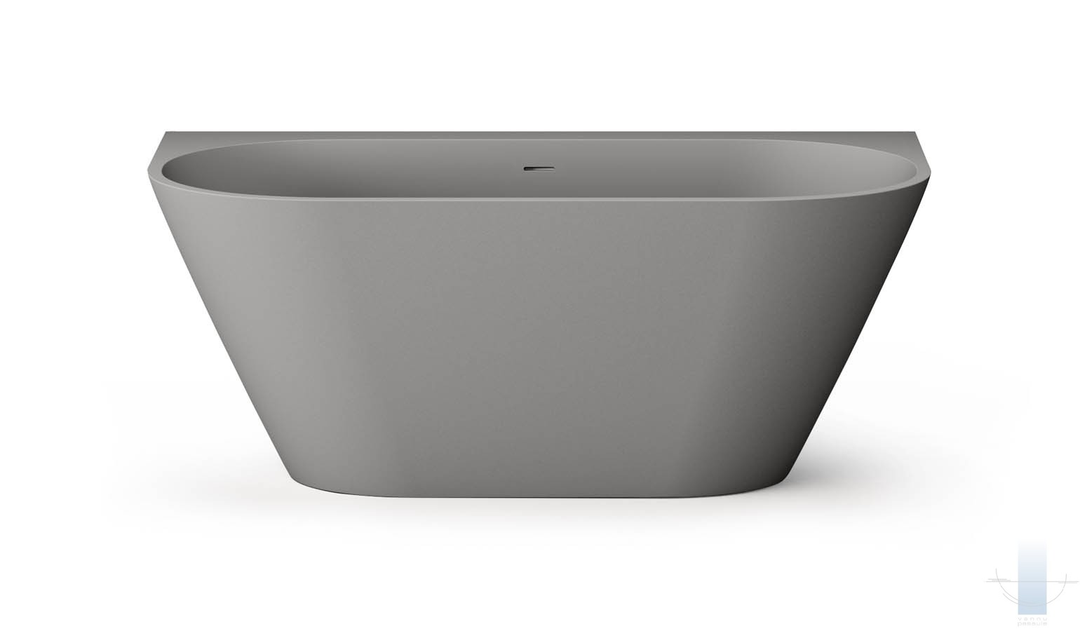 Lakoniska vanna novietošanai pie sienas. Ar plauktiņu piederumiem un jaucējkrāniem. Izgatavota no Silkstone – cēla un ilgmūžīga materiāla. Cieta kā akmens ar matēti zīdainu, siltu virsmu. Apstrādāta ar rokām.