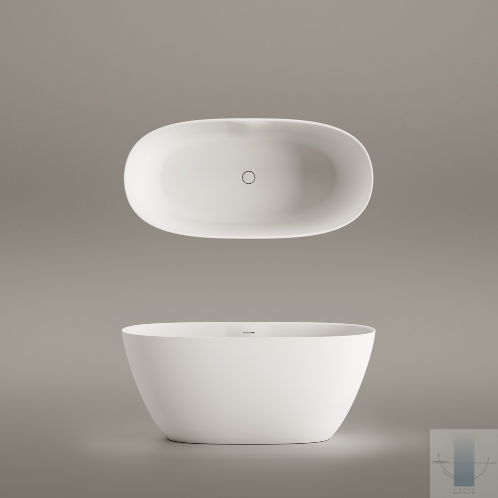 Maza, izsmalcināta brīvstāvošā vanna. Izgatavota no akmens masas – pamatīga un stabila materiāla ar klasiski spožu virsmu.