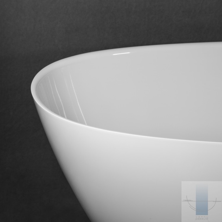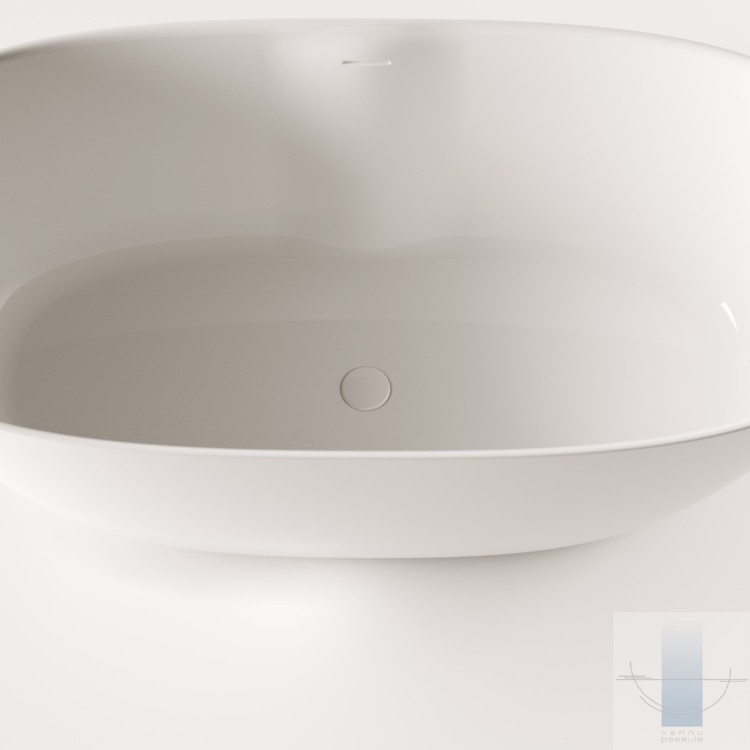 Vizuāli ieapaļa, skulpturāli smalka brīvstāvošā vanna. Izgatavota no akmens masas – pamatīga un stabila materiāla ar klasiski spožu virsmu.