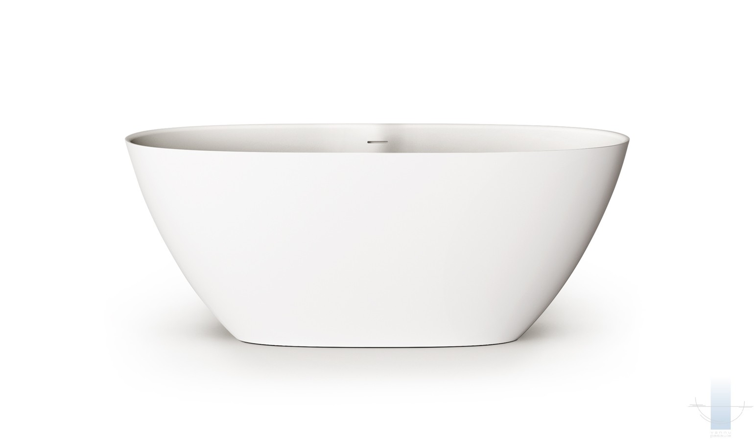 Vizuāli ieapaļa, skulpturāli smalka brīvstāvošā vanna. Izgatavota no Silkstone – cēla un ilgmūžīga materiāla. Cieta kā akmens ar matēti zīdainu, siltu virsmu. Apstrādāta ar rokām.