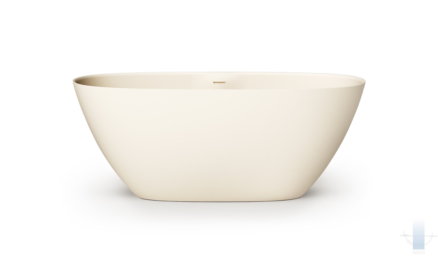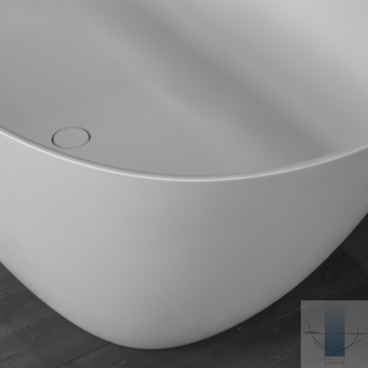 Vizuāli ieapaļa, skulpturāli smalka brīvstāvošā vanna. Izgatavota no Silkstone – cēla un ilgmūžīga materiāla. Cieta kā akmens ar matēti zīdainu, siltu virsmu. Apstrādāta ar rokām.