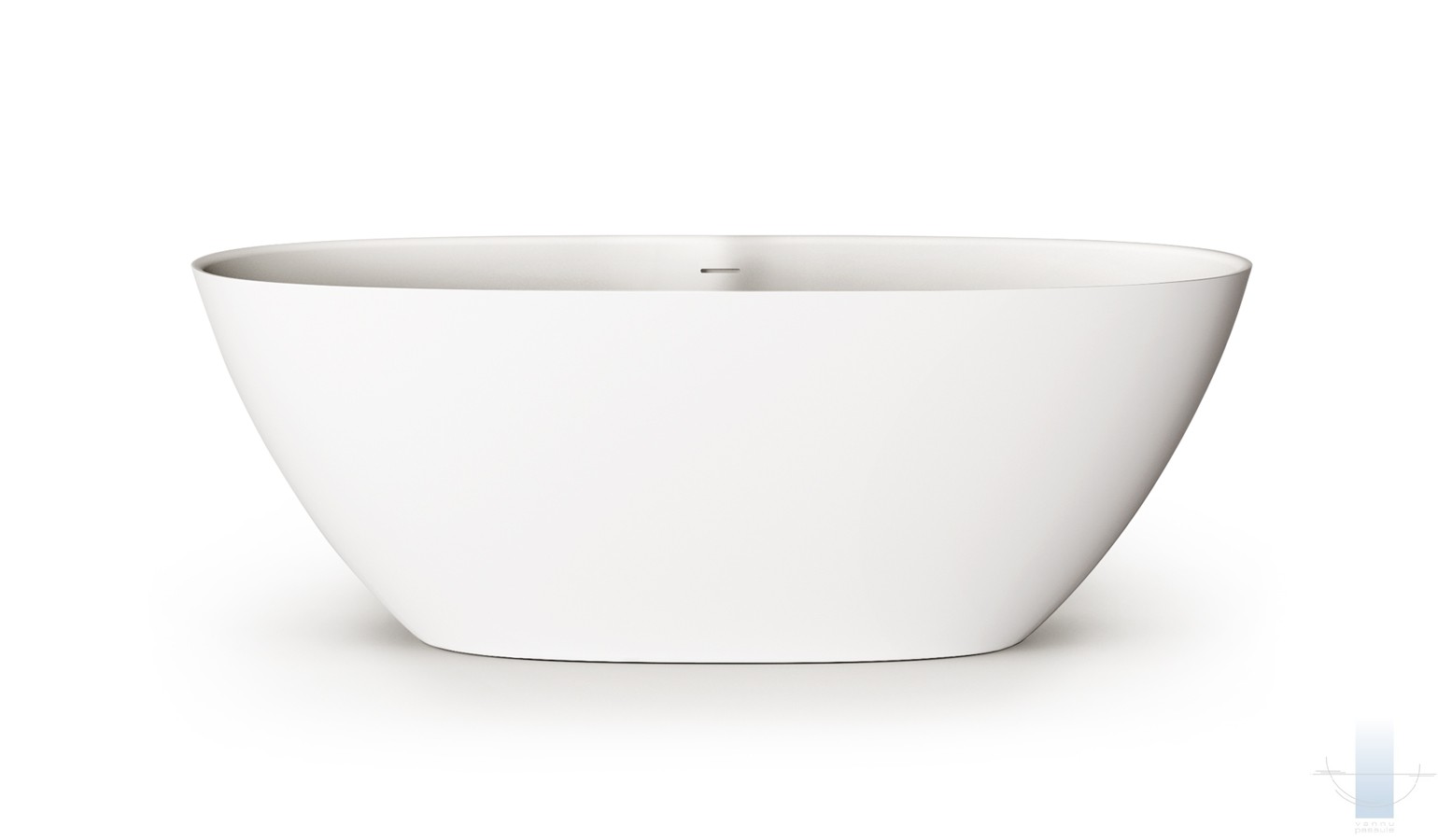 Vizuāli ieapaļa, skulpturāli smalka brīvstāvošā vanna. Izgatavota no Silkstone – cēla un ilgmūžīga materiāla. Cieta kā akmens ar matēti zīdainu, siltu virsmu. Apstrādāta ar rokām.