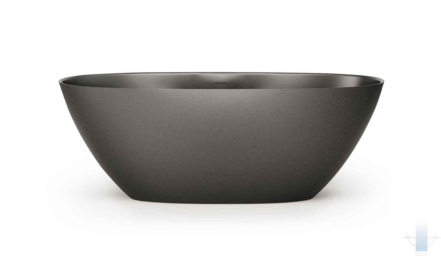 Vizuāli ieapaļa, skulpturāli smalka brīvstāvošā vanna. Izgatavota no Silkstone – cēla un ilgmūžīga materiāla. Izgatavota no Graphite – Silkstone gleznieciskākās, melnās versijas. Ar teksturētu, meistaru rokām veidotu, unikālu virsmu katram izstrādājumam.