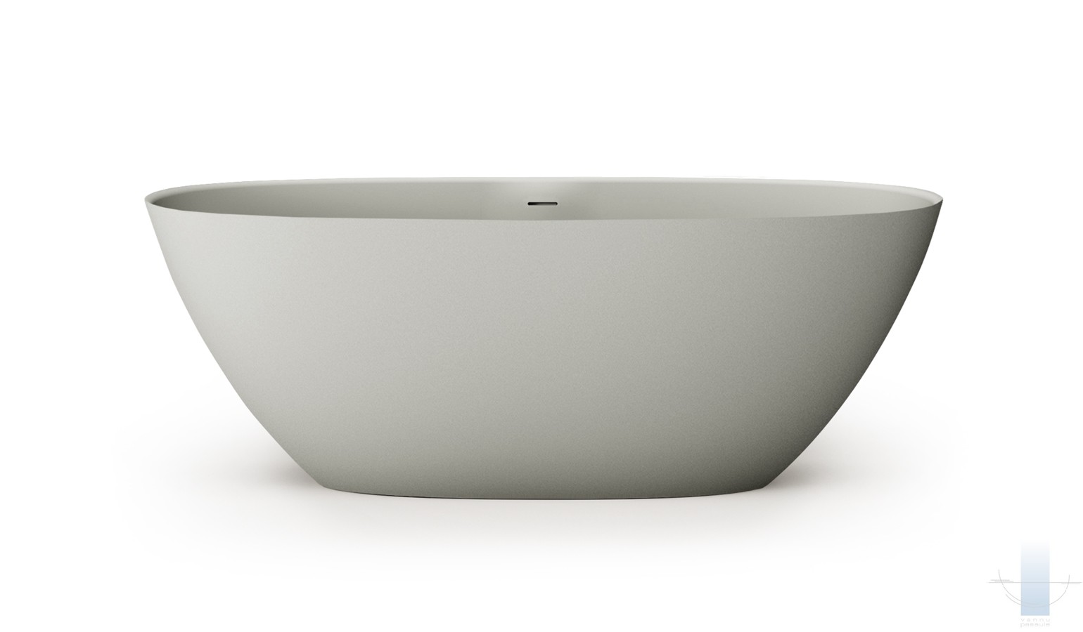 Vizuāli ieapaļa, skulpturāli smalka brīvstāvošā vanna. Izgatavota no Silkstone – cēla un ilgmūžīga materiāla. Cieta kā akmens ar matēti zīdainu, siltu virsmu. Apstrādāta ar rokām.