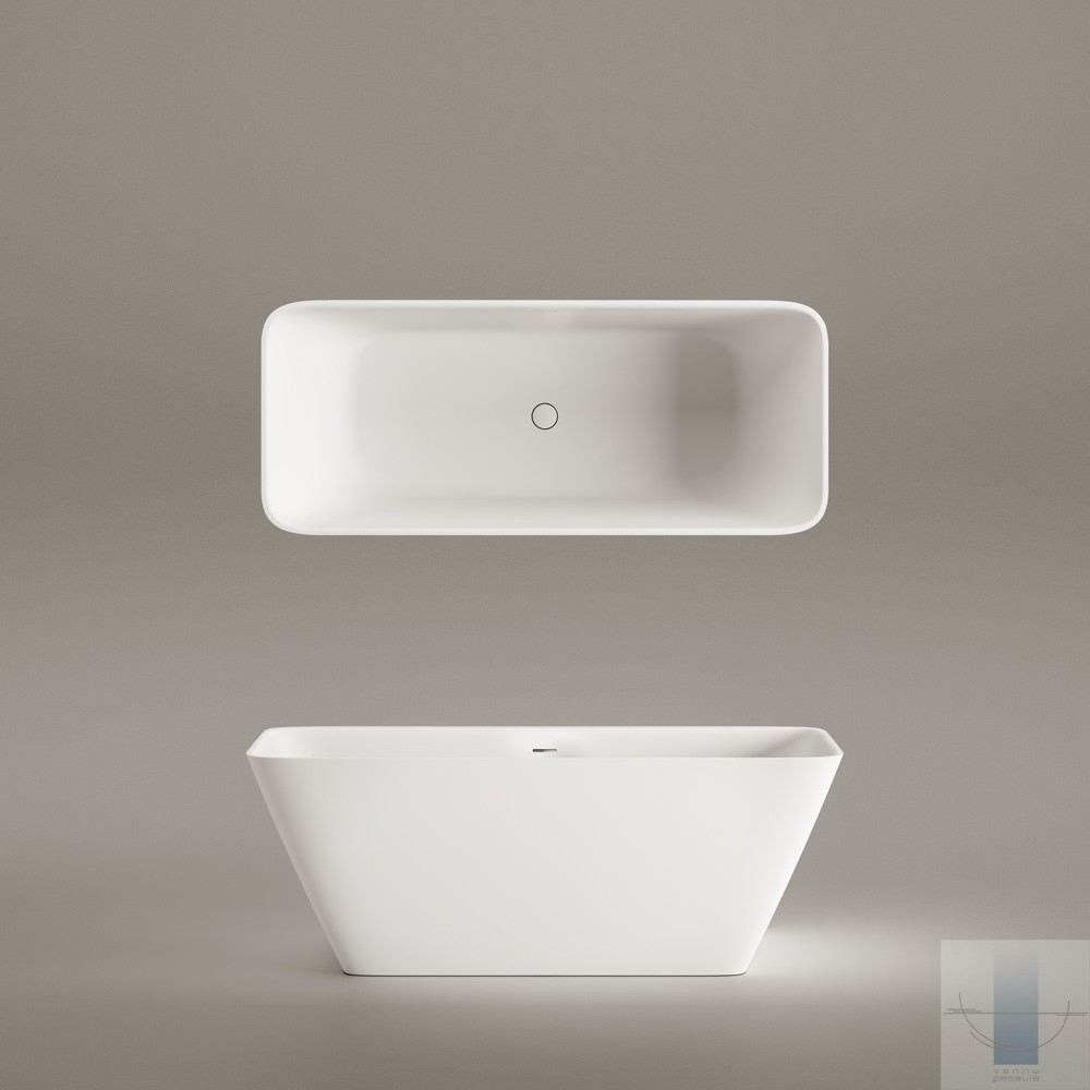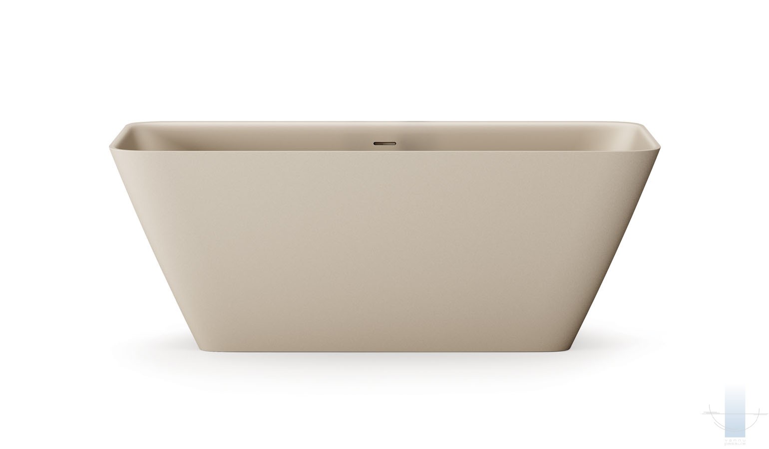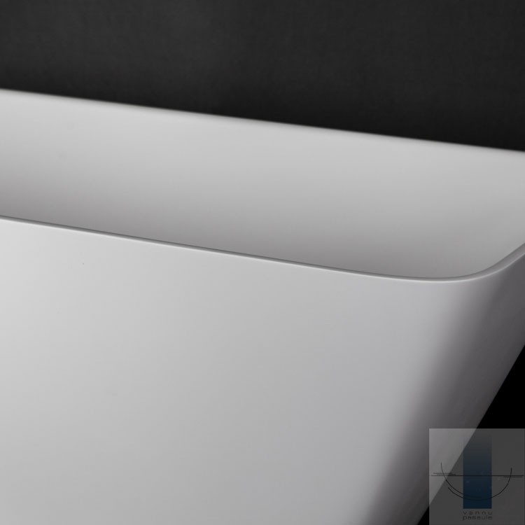Brīvstāvoša vanna ar vieglu perimetra līniju. Izgatavota no Silkstone – cēla un ilgmūžīga materiāla. Cieta kā akmens ar matēti zīdainu, siltu virsmu. Apstrādāta ar rokām.