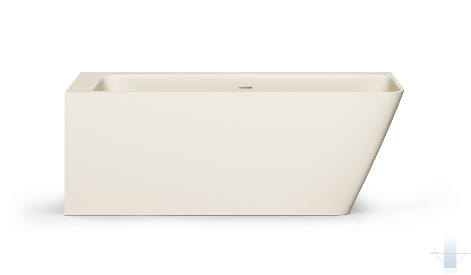 Stūra vanna, kas pilnībā piekļaujas sienām un grīdai. Viegla perimetra līnija un plauktiņš pie sienas. Paredzēta vieta jaucējkrānu montāžai. Izgatavota no Silkstone – cēla un ilgmūžīga materiāla. Cieta kā akmens ar matēti zīdainu, siltu virsmu. Apstrādāta ar rokām.