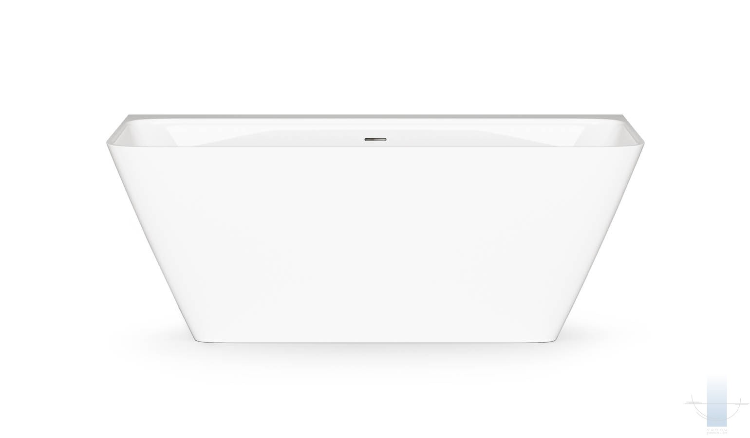 Pie sienas novietojama vanna, kas pilnībā piekļaujas sienai un grīdai. Viegla perimetra līnija un plauktiņš pie sienas. Paredzēta vieta jaucējkrānu montāžai. Izgatavota no akmens masas – pamatīga un stabila materiāla ar klasiski spožu virsmu.