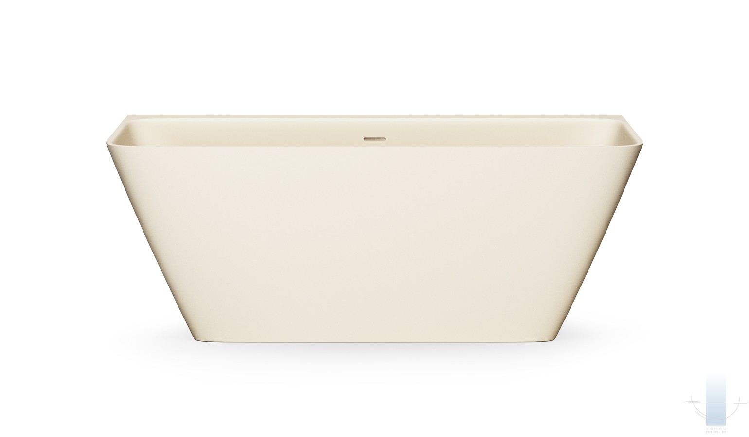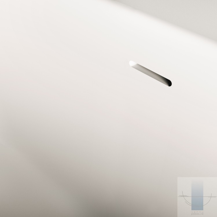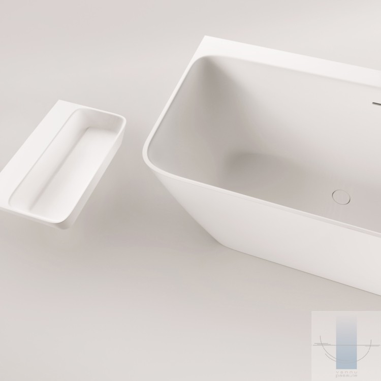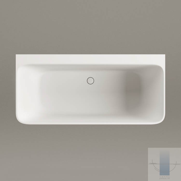 Pie sienas novietojama vanna, kas pilnībā piekļaujas sienai un grīdai. Viegla perimetra līnija un plauktiņš pie sienas. Paredzēta vieta jaucējkrānu montāžai. Izgatavota no Silkstone – cēla un ilgmūžīga materiāla. Cieta kā akmens ar matēti zīdainu, siltu virsmu. Apstrādāta ar rokām.