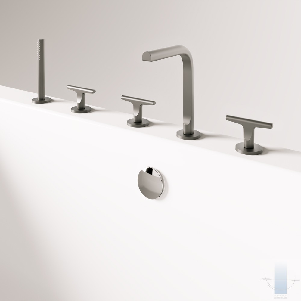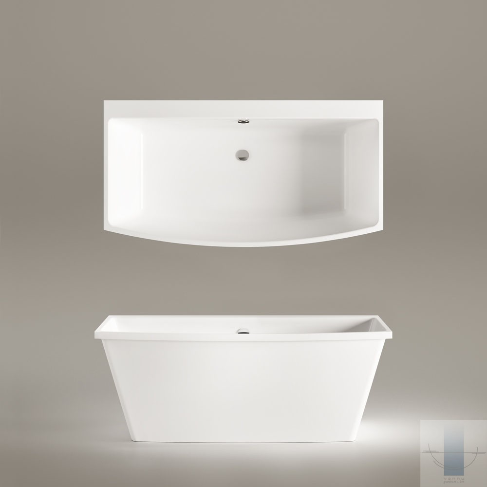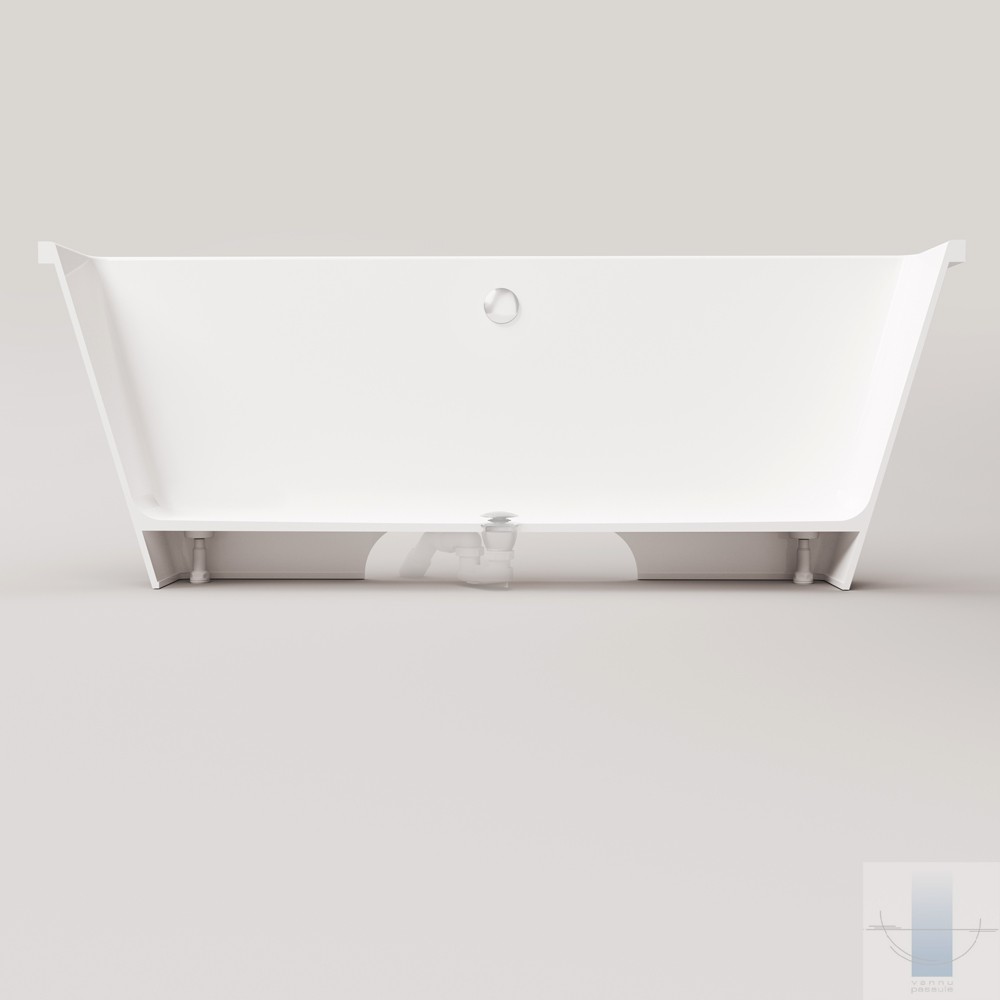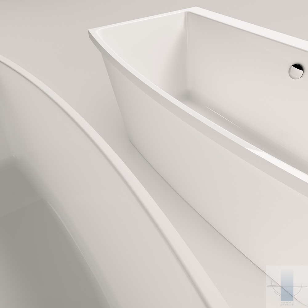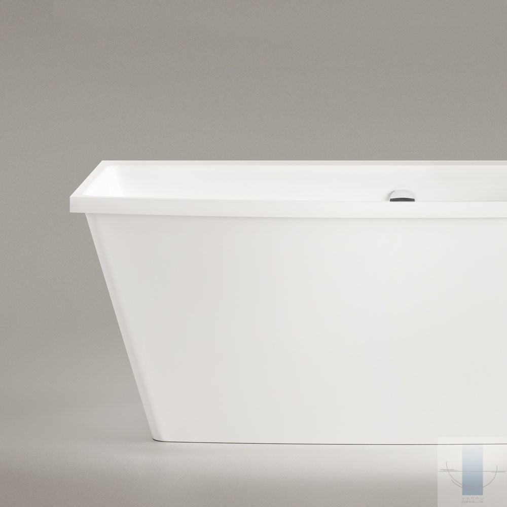 Ļoti ietilpīga vanna. Iepējams izvietot maisītāju uz tās malas. Izgatavota no akmens masas – pamatīga un stabila materiāla ar klasiski spožu virsmu.