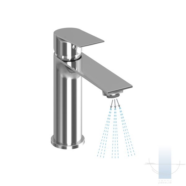 Jaucējkrāna iekšpusē ir viedais aerators ar EcoFlow funkciju. Plūsma ir ierobežota līdz 4,5 l minūtē un bagātināta ar gaisu. Jūs, iespējams, to pat nepamanīsiet, taču tas ietekmēs jūsu ūdens patēriņu, kas būs mazāks nekā ar parasto jaucējkrānu.