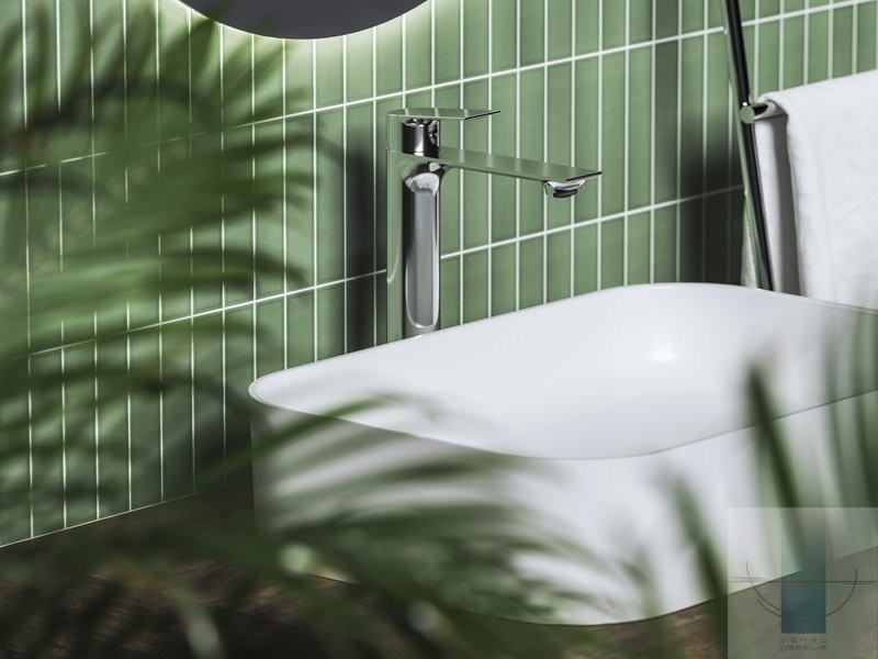 Pilnīgam vannas istabas dizainam, iesakām izvēlēties citus tādas pašas krāsas Plan jaucējkrānus.