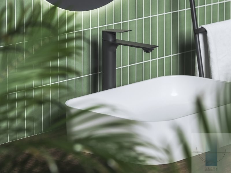 Pilnīgam vannas istabas dizainam, iesakām izvēlēties citus tādas pašas krāsas Plan jaucējkrānus.