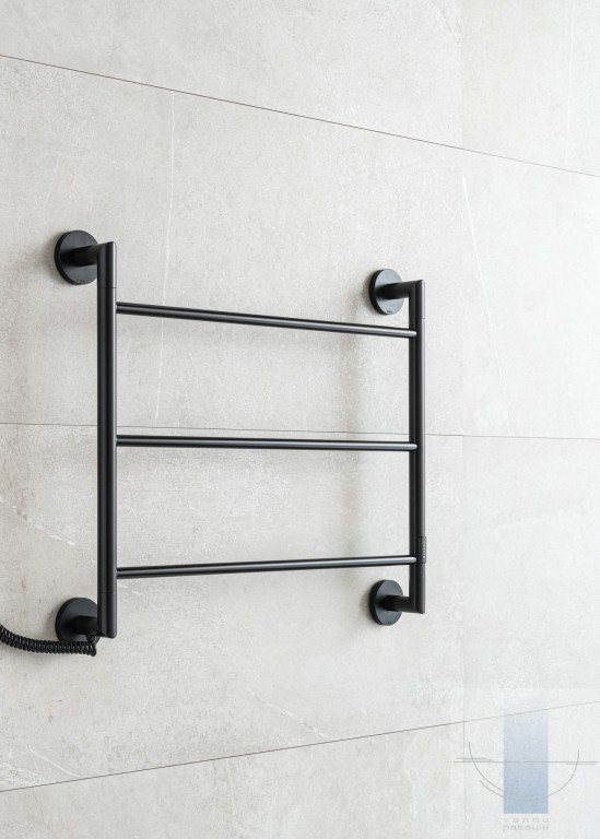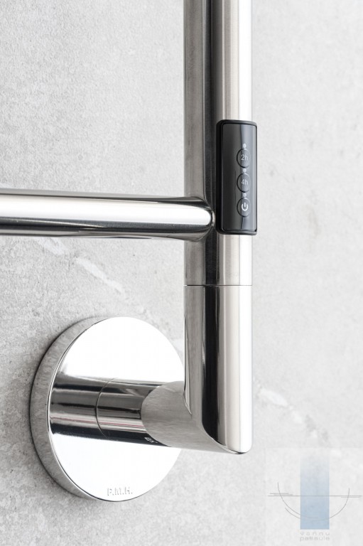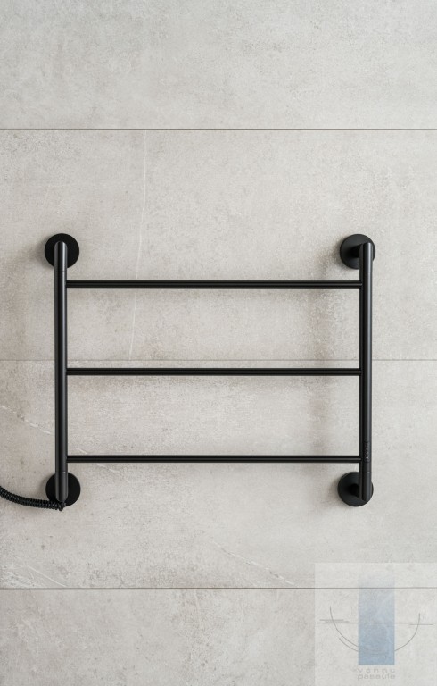 Elektriskais dvieļu žāvētājs ar zemu enerģijas patēriņu ir pieejams pulētā nerūsējošā tērauda vai melnā krāsā.