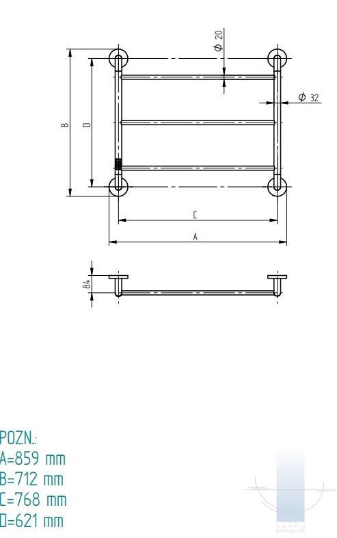 P.M.H dvieļu žāvētājs Britta 859x712 mm, Melns