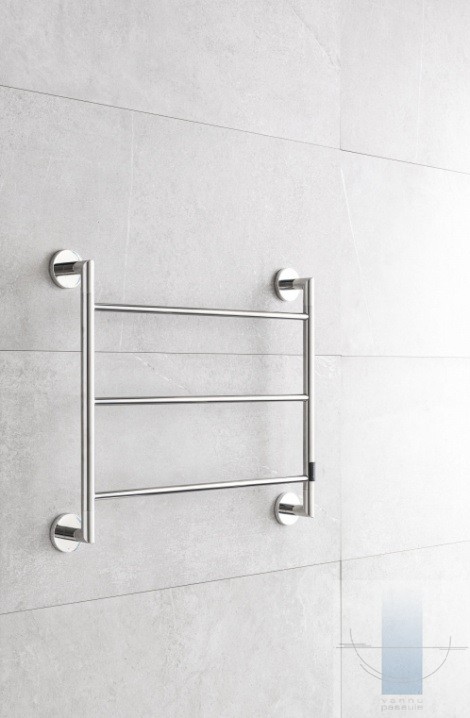 Elektriskais dvieļu žāvētājs ar zemu enerģijas patēriņu ir pieejams pulētā nerūsējošā tērauda vai melnā krāsā.