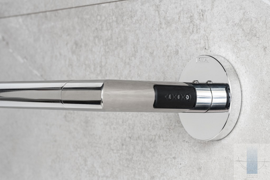Elektriskais dvieļu žāvētājs ar zemu enerģijas patēriņu ir pieejams pulēta nerūsējošā tērauda vai melnā krāsā.