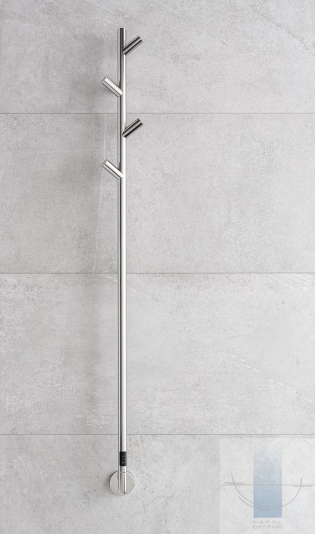 Elektriskais dvieļu žāvētājs ar zemu enerģijas patēriņu ir pieejams pulētā nerūsējošā tērauda vai melnā krāsā.