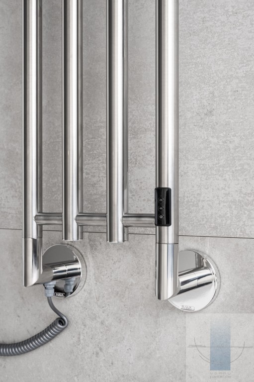 Elektriskais dvieļu žāvētājs ar zemu enerģijas patēriņu ir pieejams pulētā nerūsējošā tērauda vai melnā krāsā.