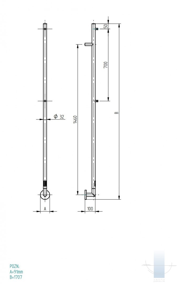 P.M.H dvieļu žāvētājs Ole 91x1708 mm, Polished Stainless Steel