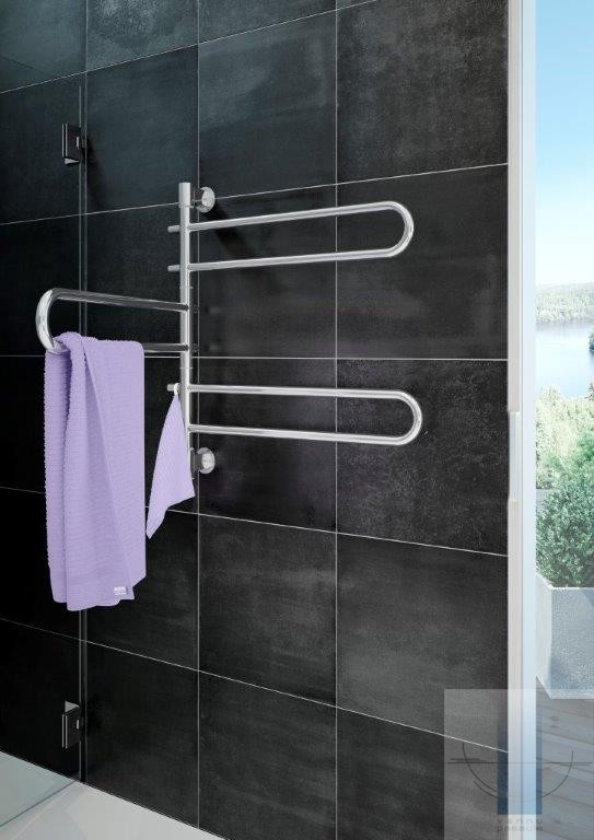 Pagriežamie balsti nodrošina minimālistisku izskatu. Elektriskā žāvētāja sekcijas var pagriezt par 180°, kas ļauj ērti pakarināt dvieļus.